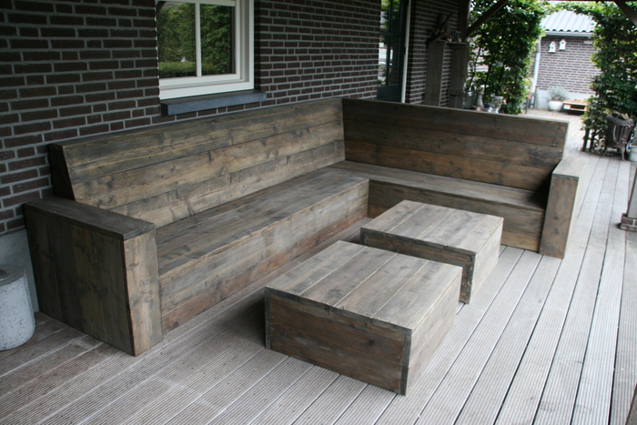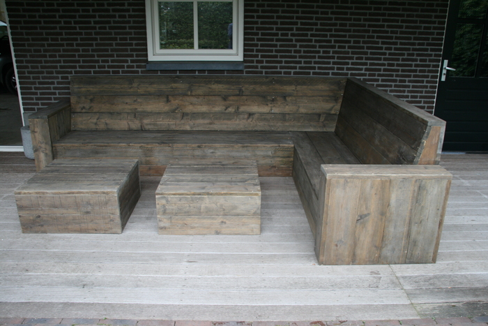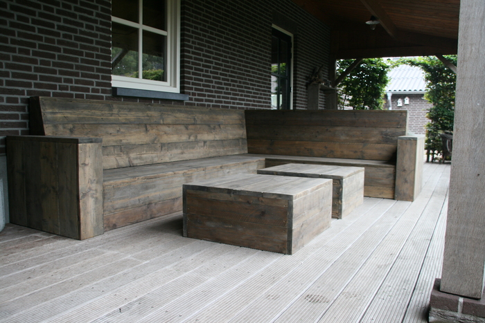 - de behandeling van de bank met onze speciale steigerhoutbeits